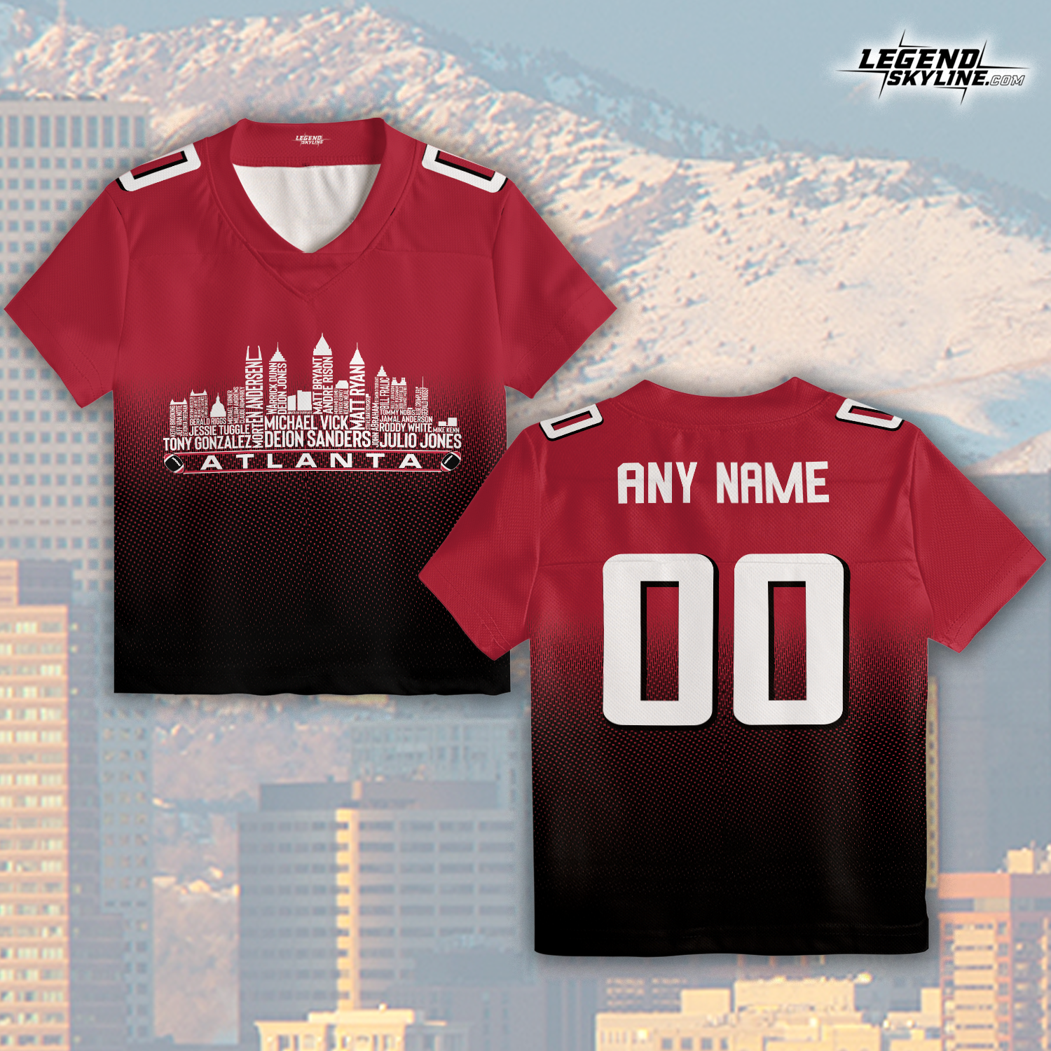 Atlanta Jersey Custom Football Greatest Of All Time Team Legends Atlanta City Skyline Jersey Shirt, Personalized Embroidery Name Number