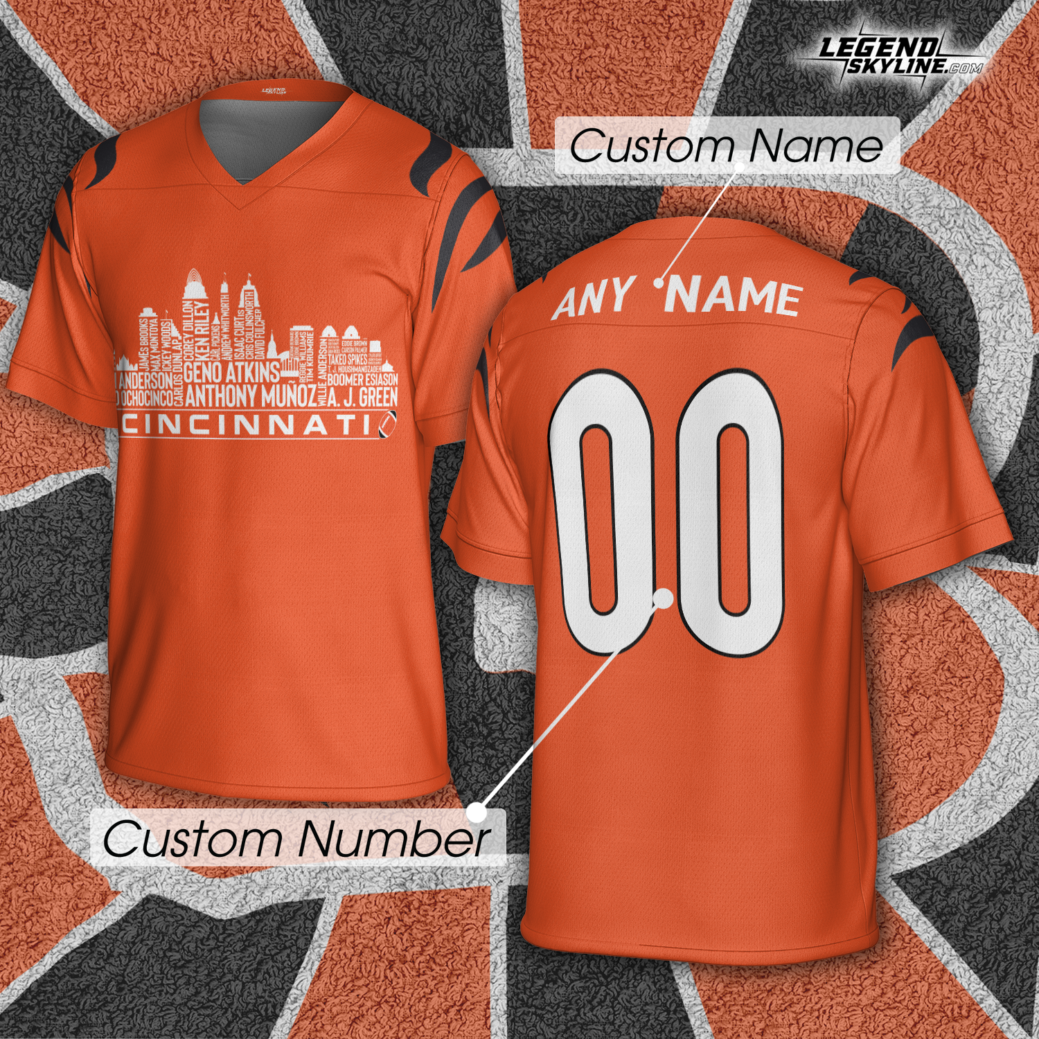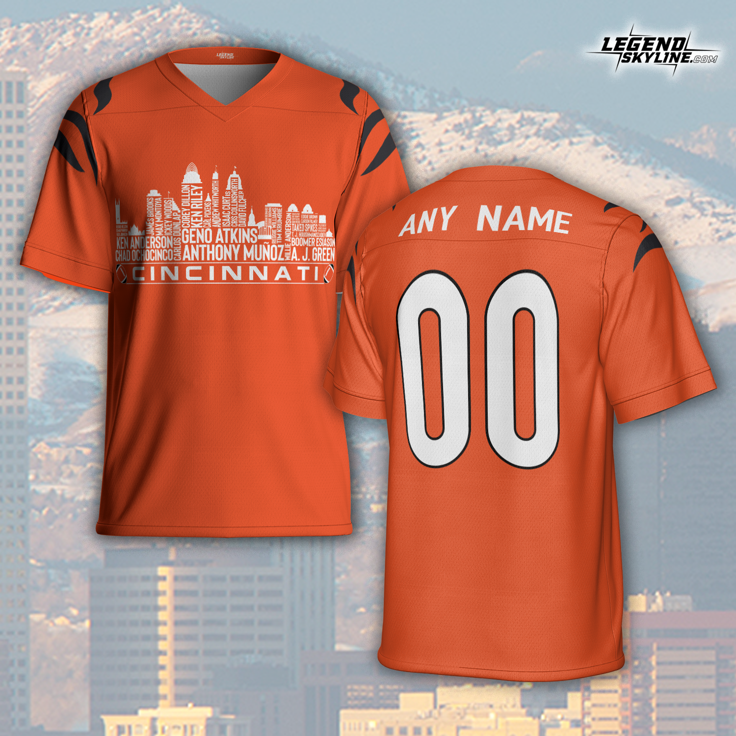 Cincinnati Jersey Custom Football Greatest Of All Time Team Legends Cincinnati City Skyline Jersey Shirt, Personalized Embroidery Name Number