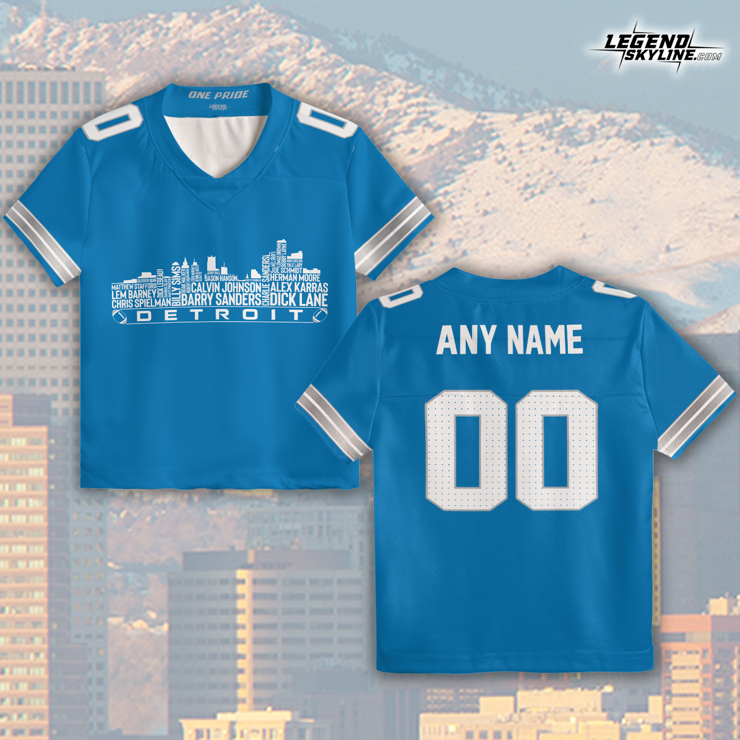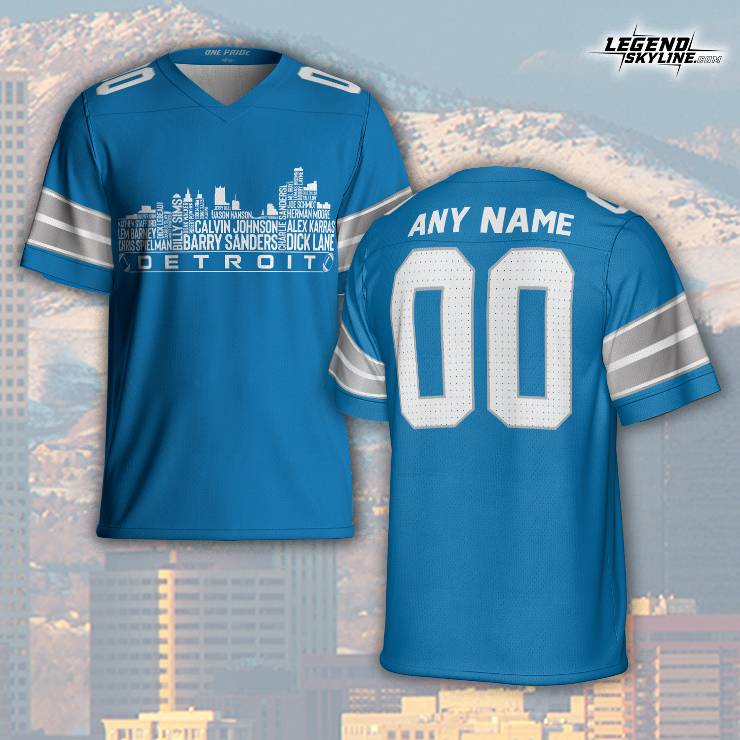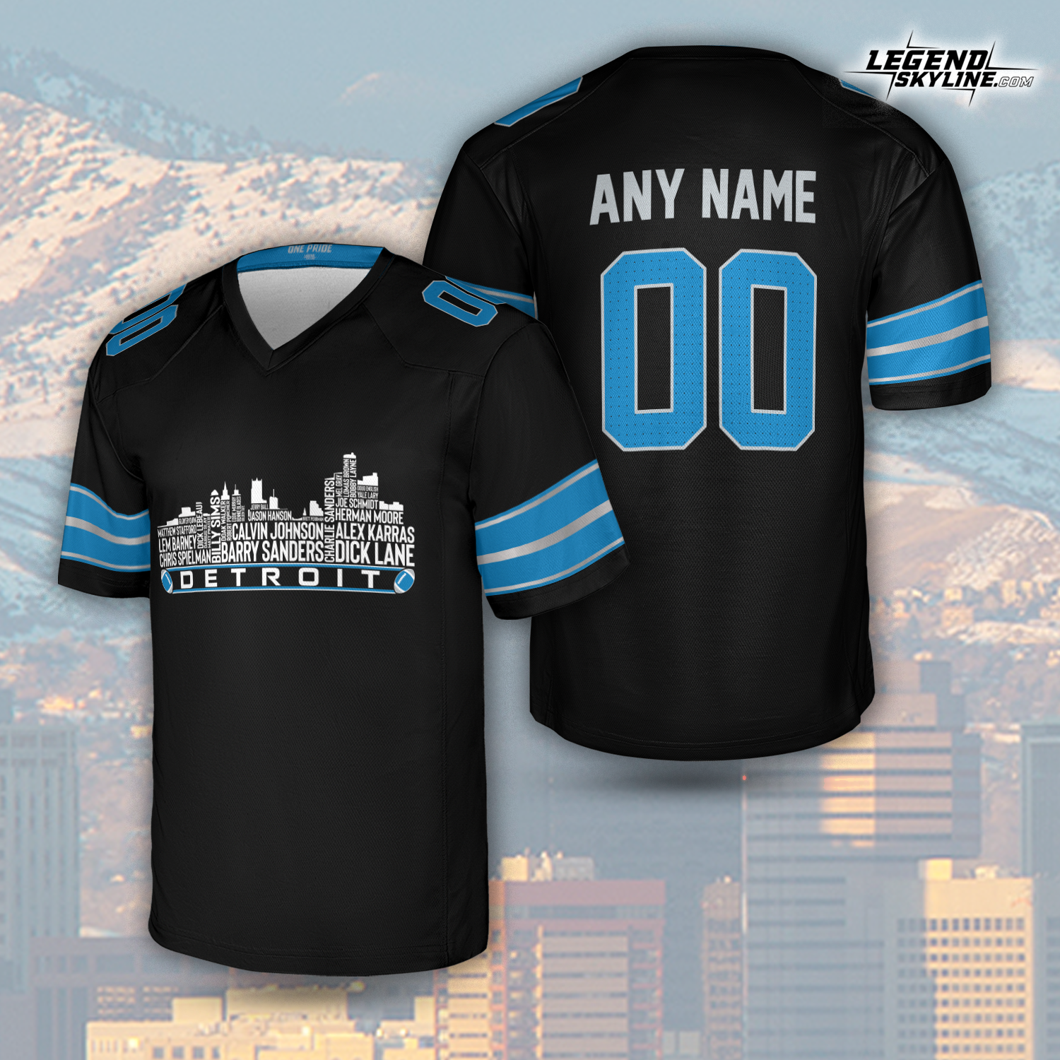 Detroit Jersey Custom Football Greatest Of All Time Team Legends Detroit City Skyline Jersey Shirt, Personalized Embroidery Name Number