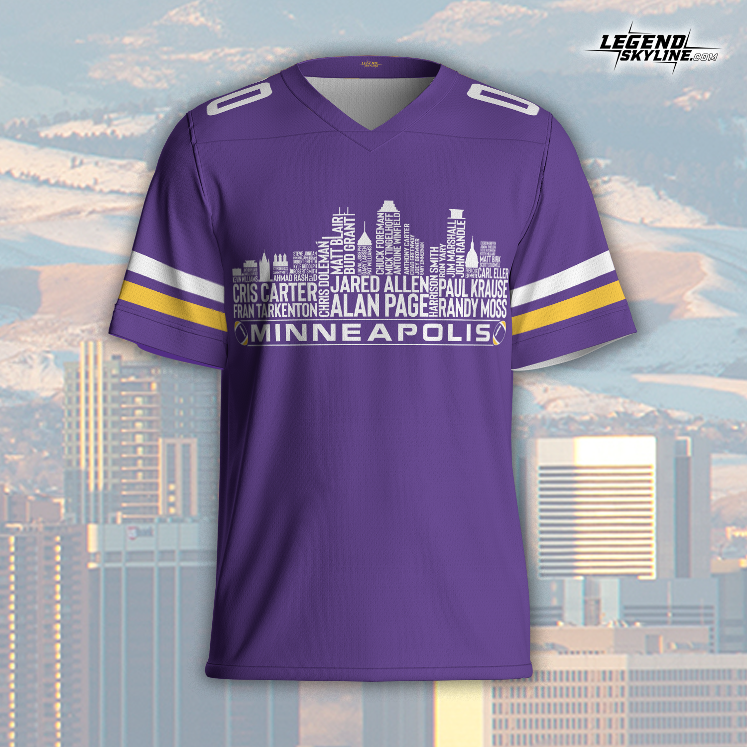 Minnesota Jersey Custom Football Greatest Of All Time Team Legends Minnesota City Skyline Jersey Shirt, Personalized Embroidery Name Number