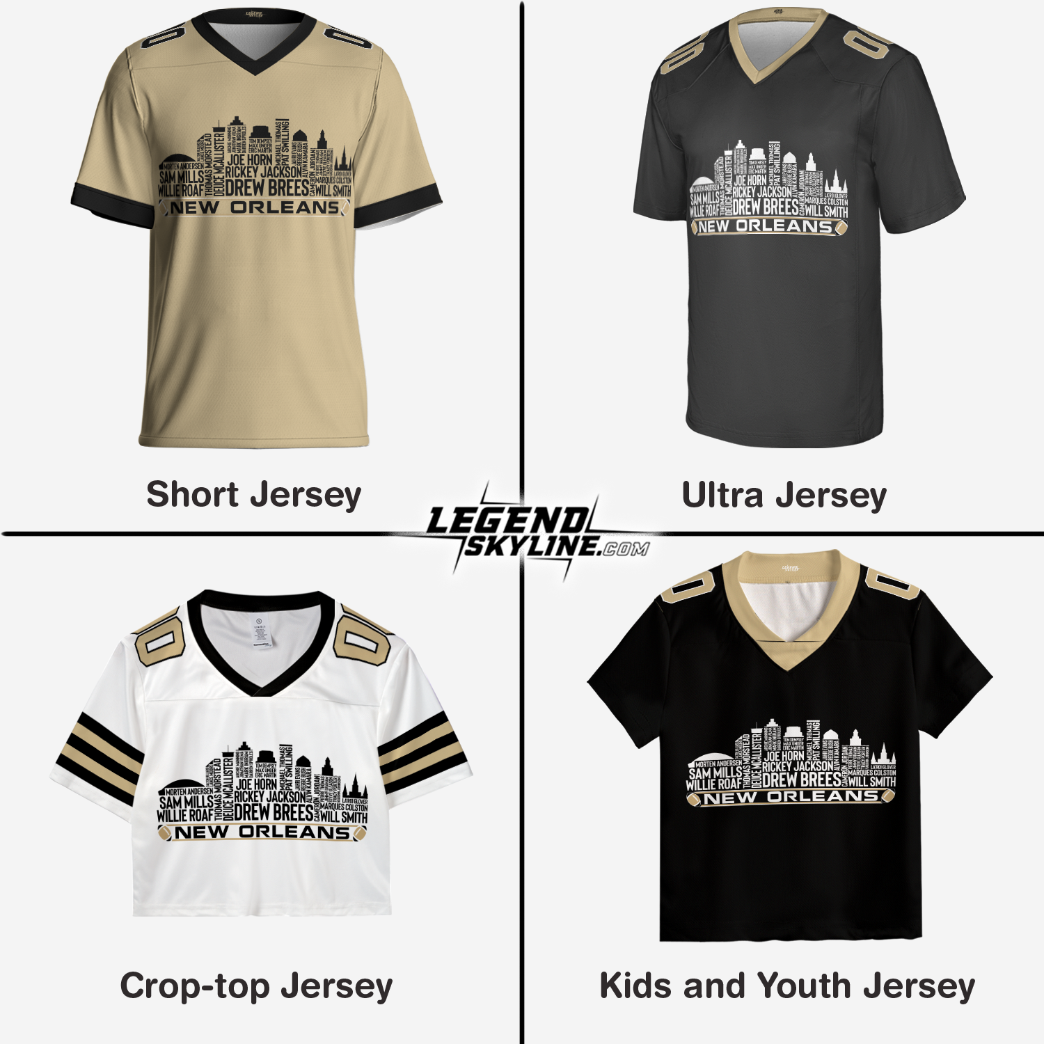 New Orleans Jersey Custom Football Greatest Of All Time Team Legends New Orleans City Skyline Jersey Shirt, Personalized Embroidery Name Number