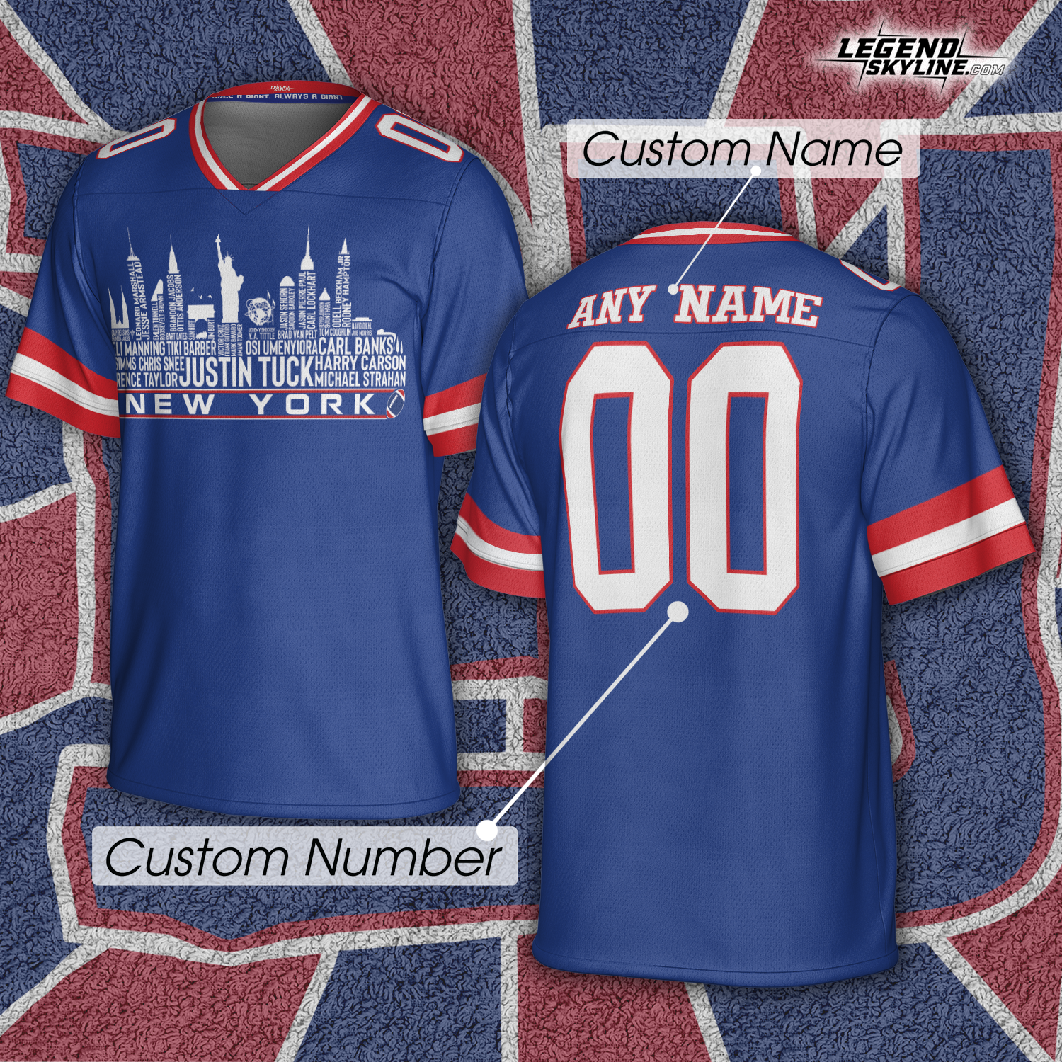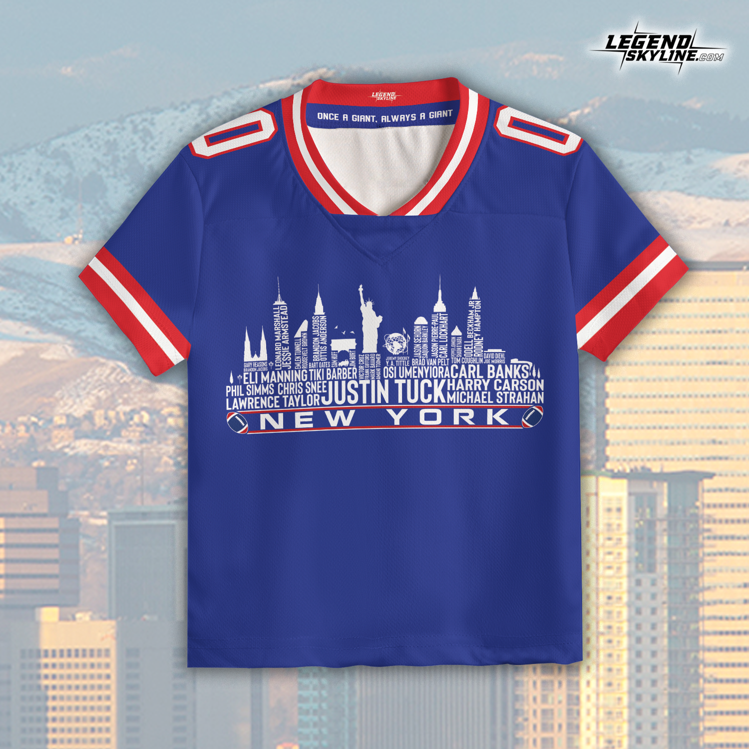 New York Jersey Custom Football Greatest Of All Time Team Legends New York City Skyline Jersey Shirt Personalized Embroidery Name Number