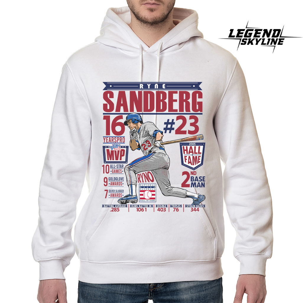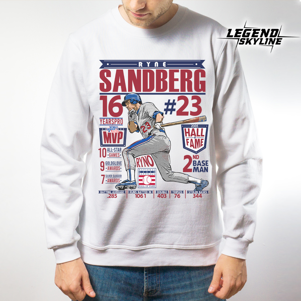 Honor the legacy of Ryne Sandberg, a true baseball icon and Hall of Fame second baseman. This exclusive tribute tee celebrates his legendary 1984 MVP season, 10× All-Star honors, and Gold Glove greatness. Featuring bold stats, vintage style, and heartfelt design, it’s a must-have for Cubs fans and baseball historians alike.